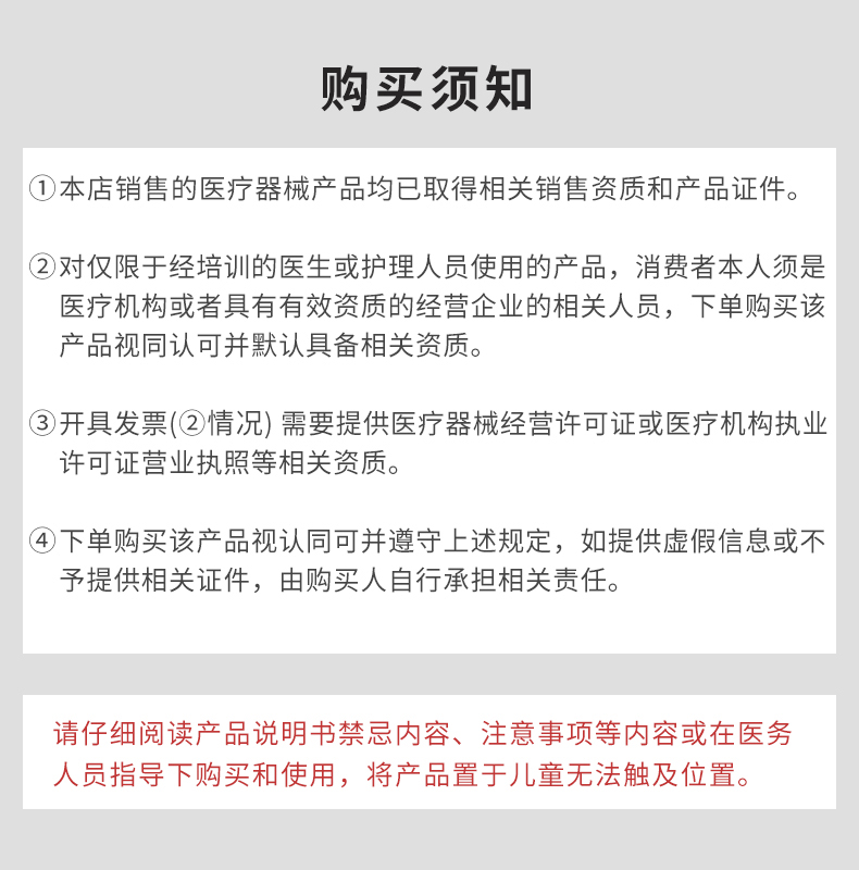 注明:購(gòu)買者購(gòu)買后需要提供相關(guān)資質(zhì),如果不提供相關(guān)資質(zhì)證明,自行下單者則默認(rèn)為購(gòu)買者為個(gè)人用于非醫(yī)療相關(guān)使用場(chǎng)景。使用場(chǎng)景為非醫(yī)療器械場(chǎng)景不受說明書使用人群限制。