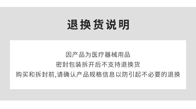 6、因產(chǎn)品的特殊性,為了您與他人的衛(wèi)生和健康,拆封后無法安排退換,請(qǐng)知曉介意者慎拍